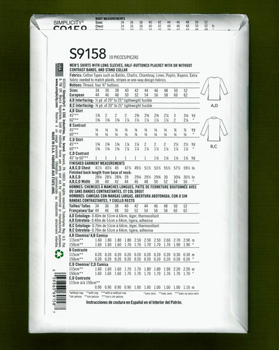 Men 039 S Pullover Henley Style Shirts Sewing Pattern Sizes 44 52 Simplicity 9158 Ebay